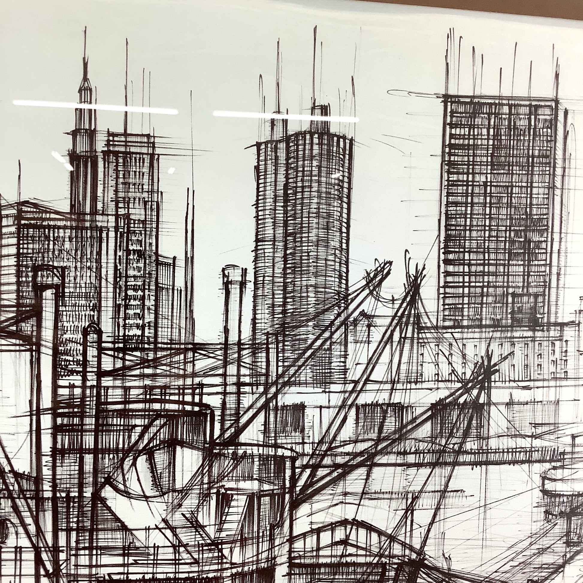 Nivelle’s work is celebrated for its ability to merge the industrial and the serene — urban landscapes rendered with the gentleness of seascapes. This image captures that intersection beautifully.