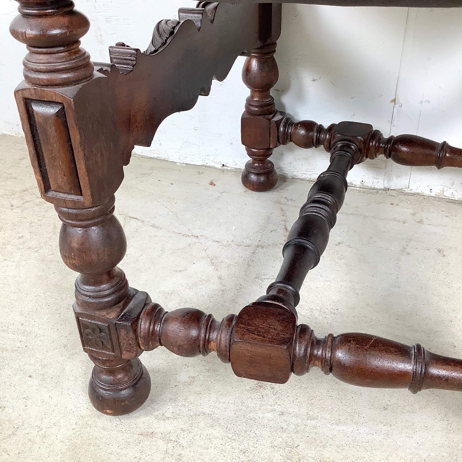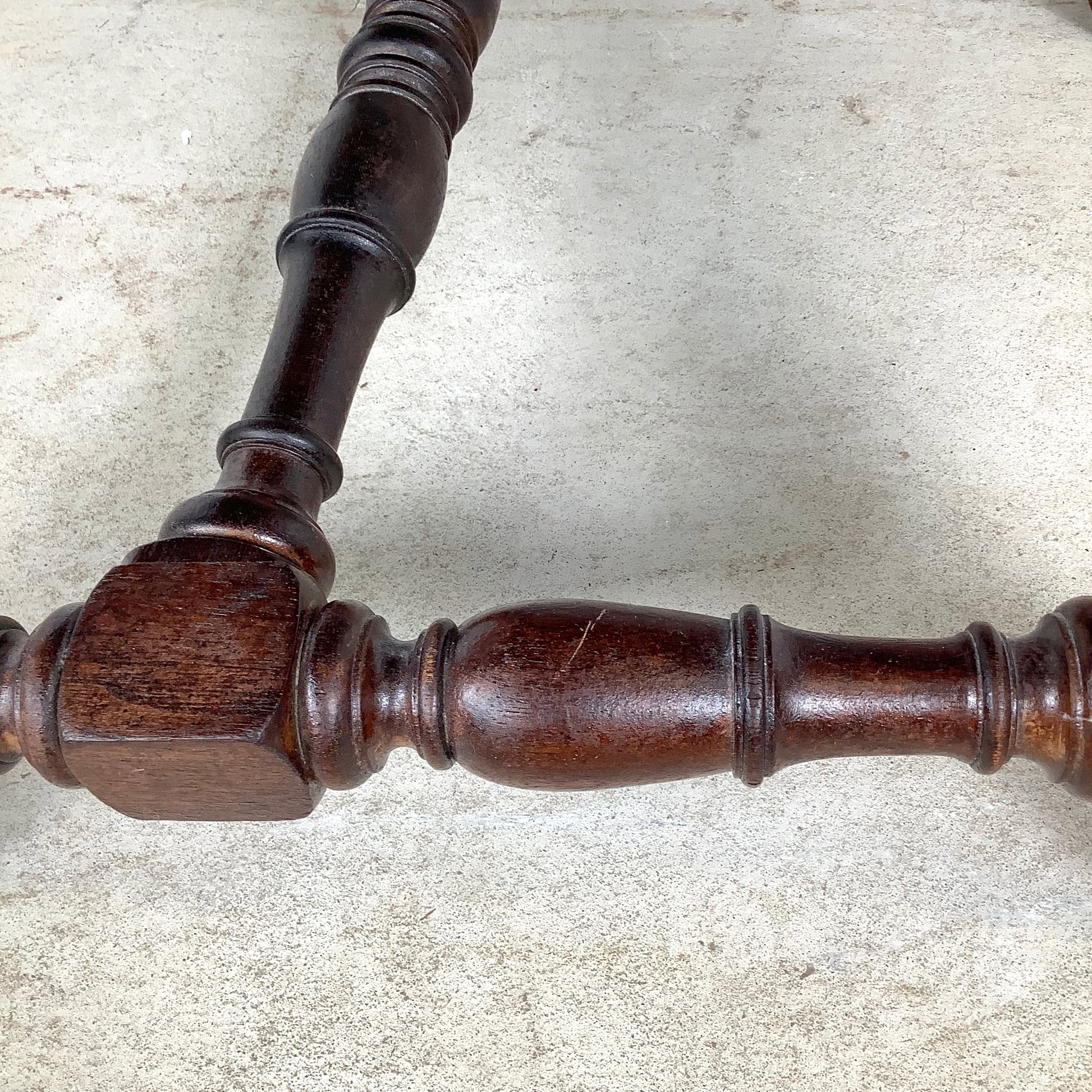 The chair remains sturdy and stable, with a beautifully aged patina that highlights the natural character of the walnut. Minor wear consistent with age adds to its antique charm without affecting functionality.