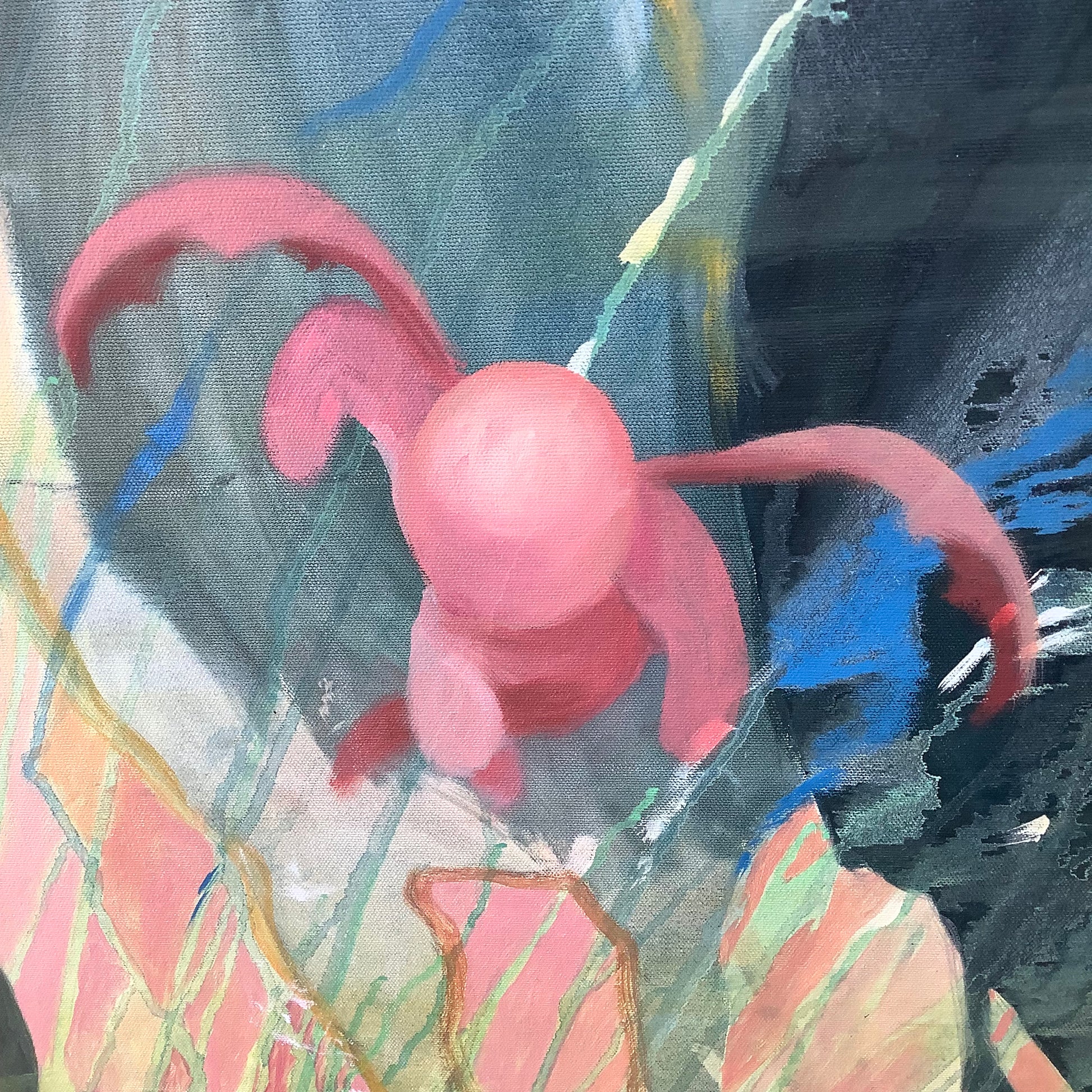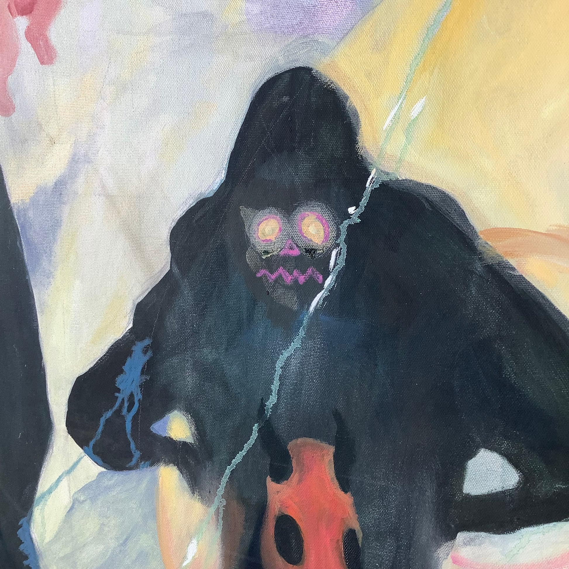 The square format reinforces the painting’s authority. It occupies space confidently, making it well suited for modern residential interiors, gallery walls, or creative commercial environments.