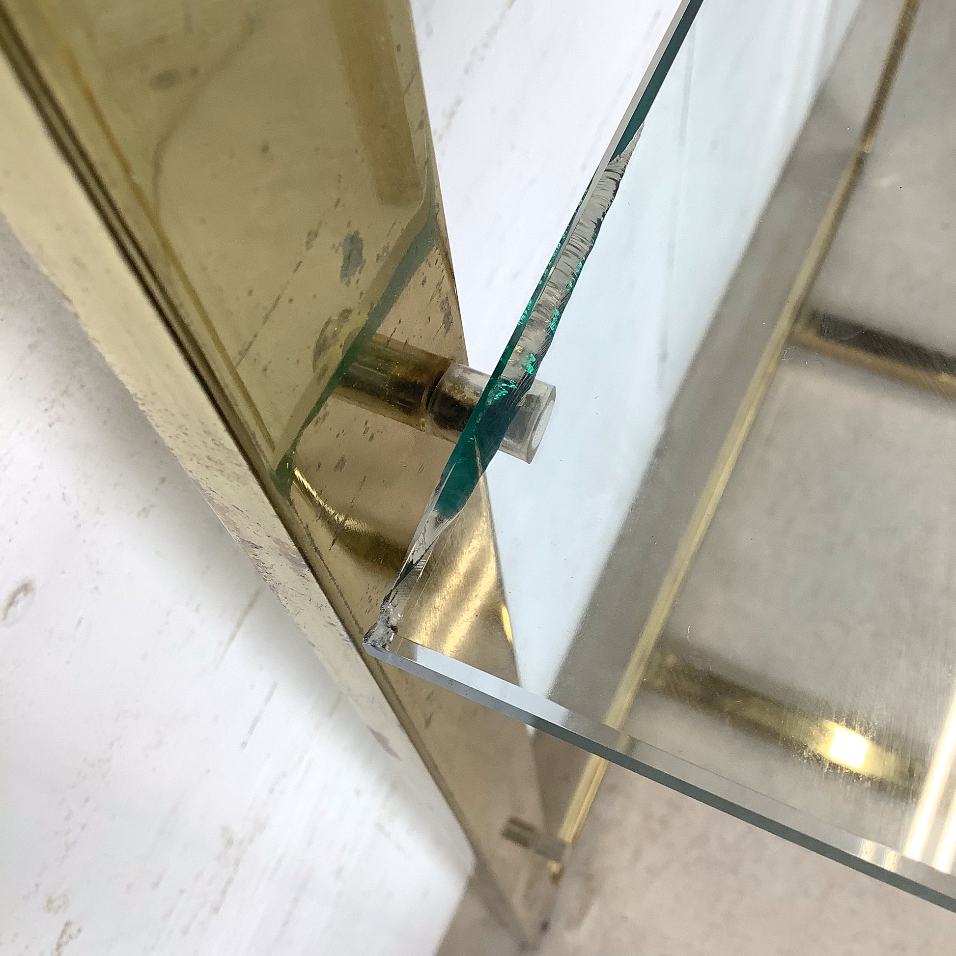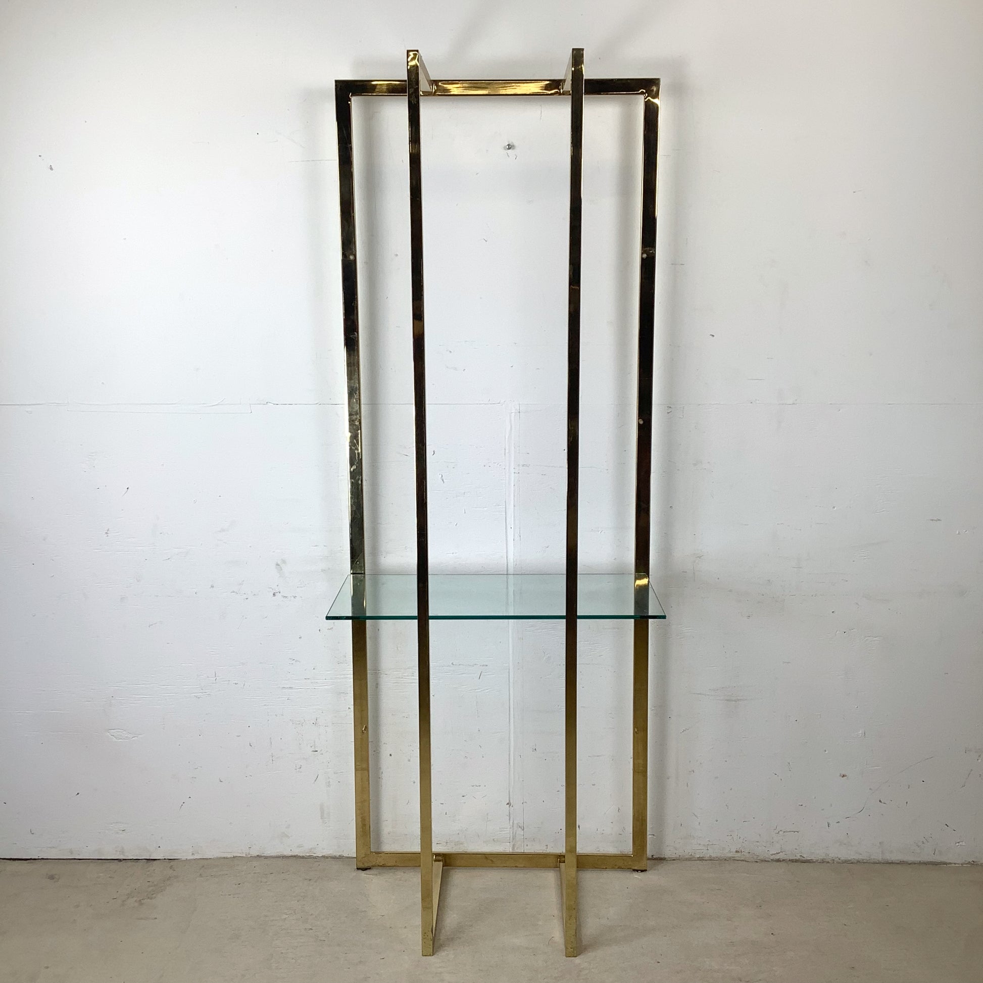 Architectural Brass and Glass Display Shelf, Vintage Modern