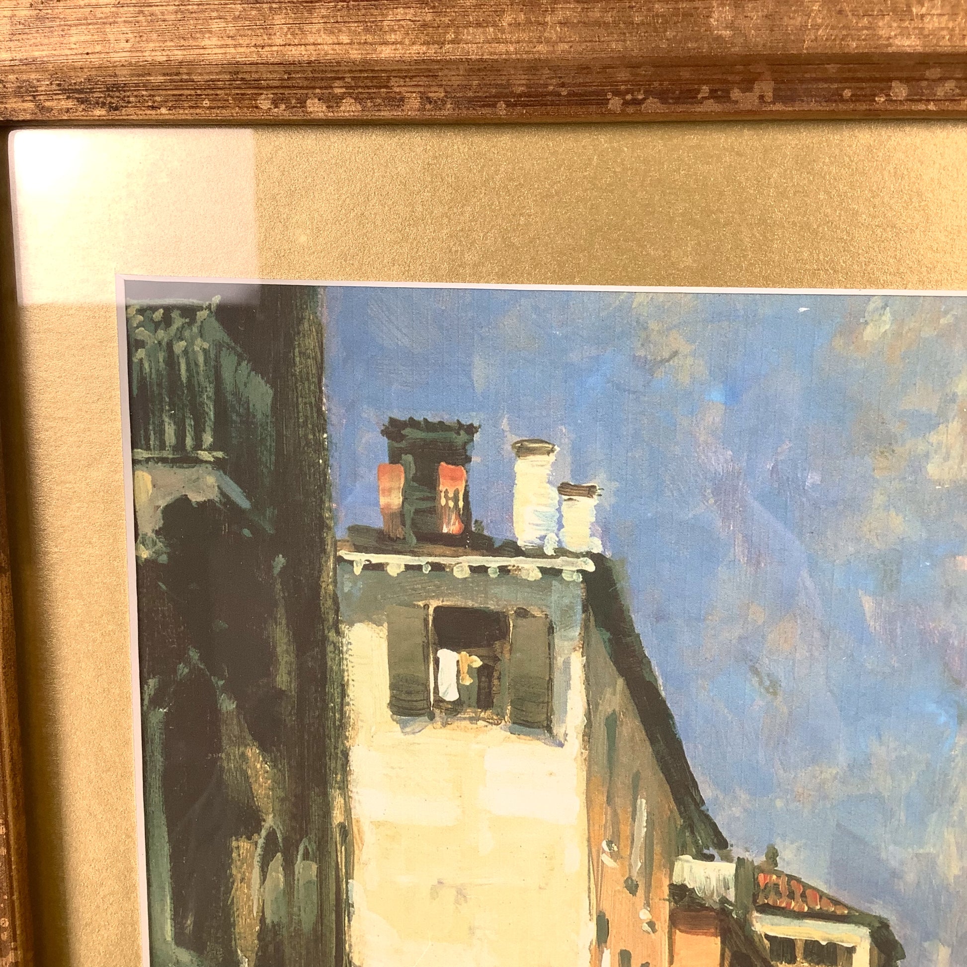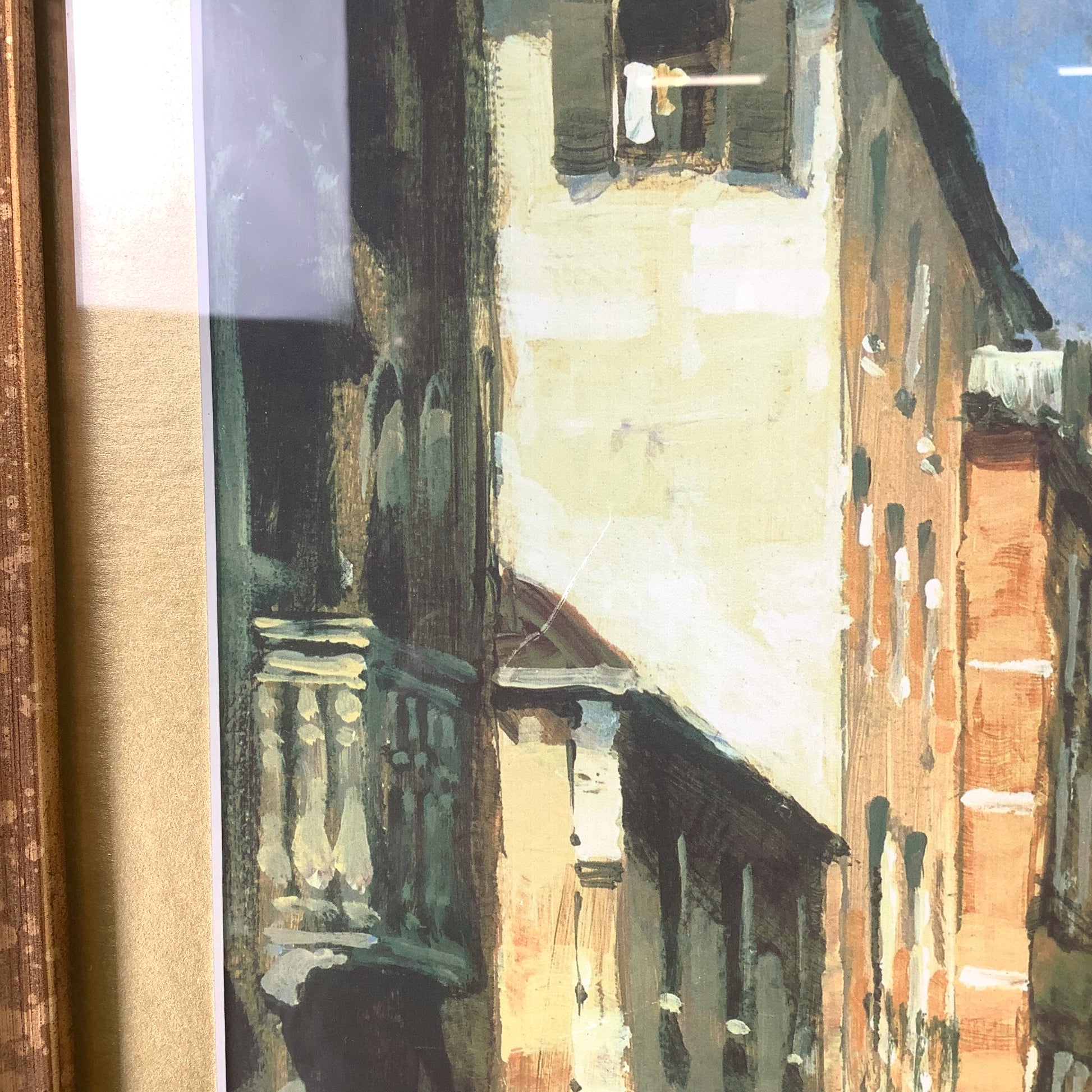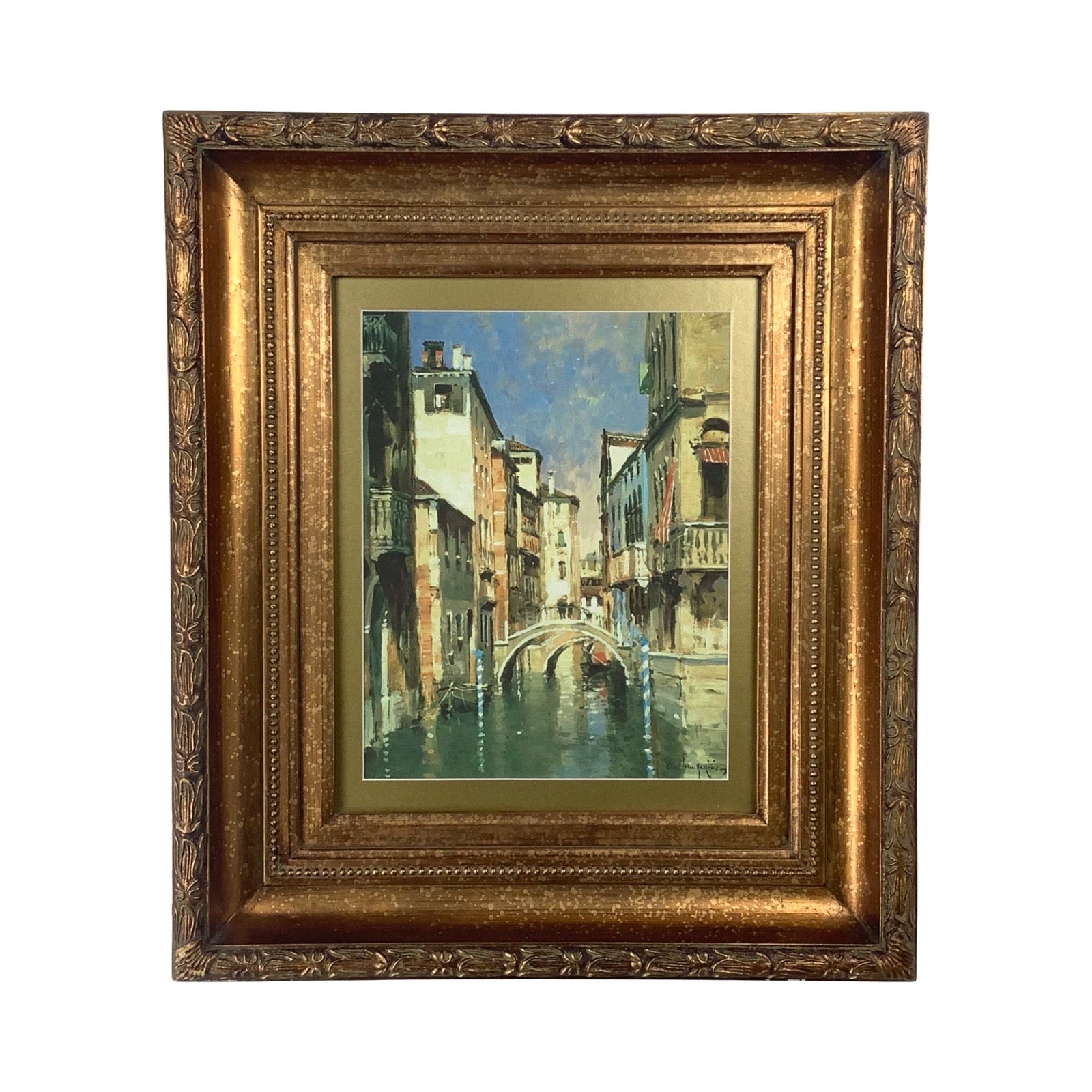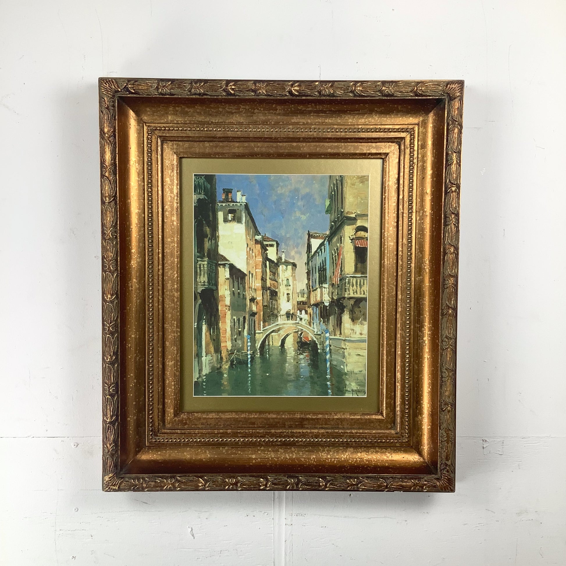 European Grand Tour Canal Scene, Decorative Print in Carved Gilt Frame
