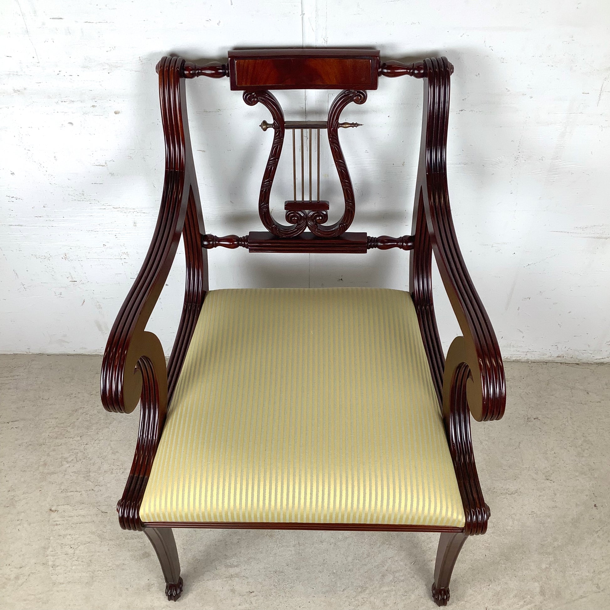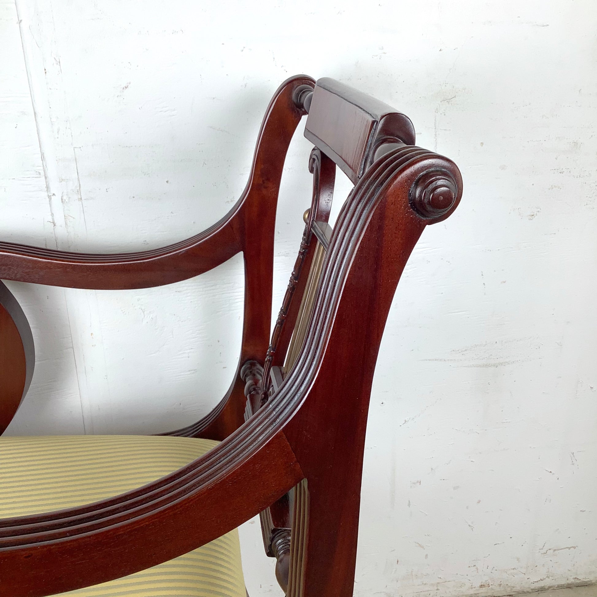 Elegant Vintage Lyre-Back Mahogany Accent Chair With Upholstered Seat