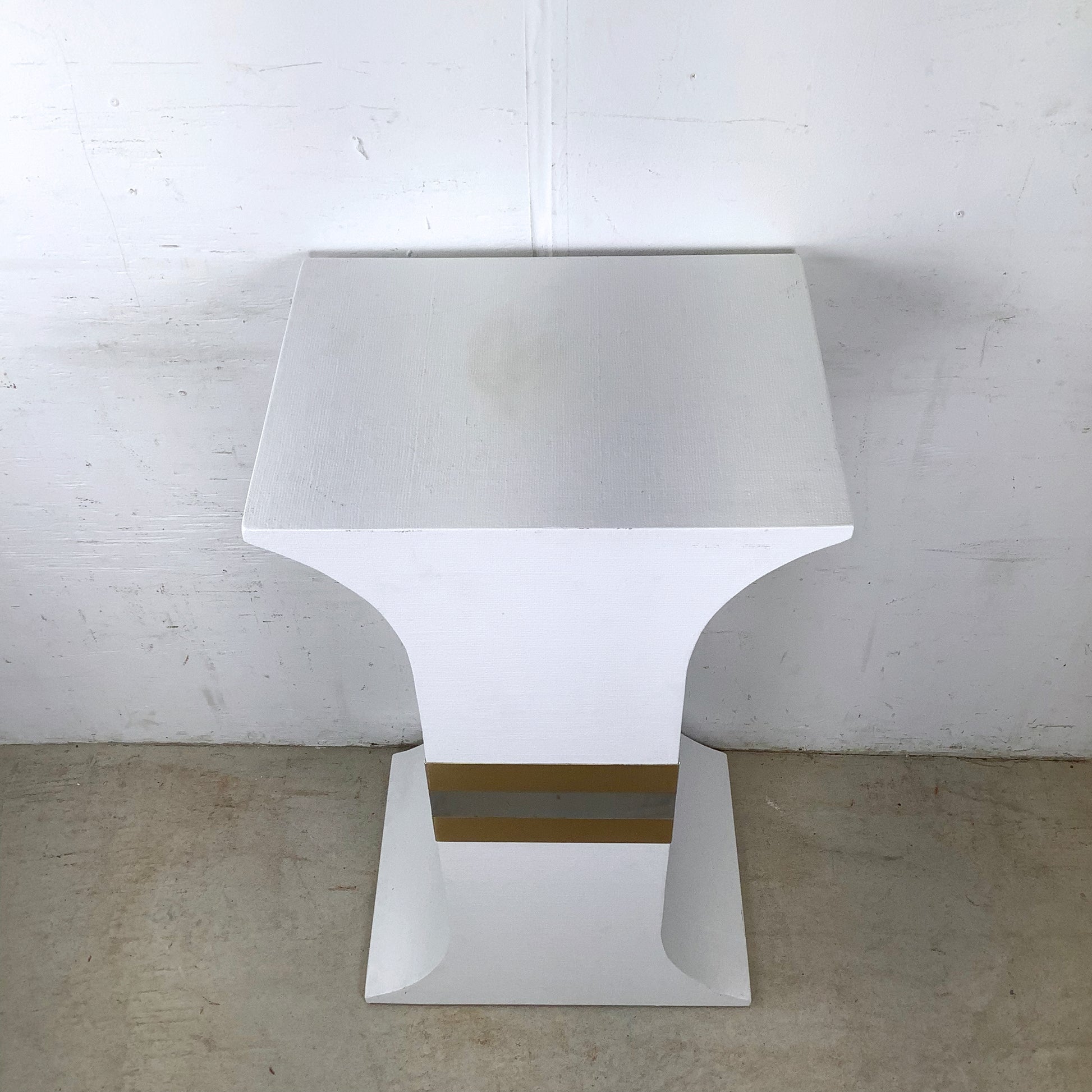 Hollywood Regency Hourglass Stand, White Grasscloth with Two-Tone Trim