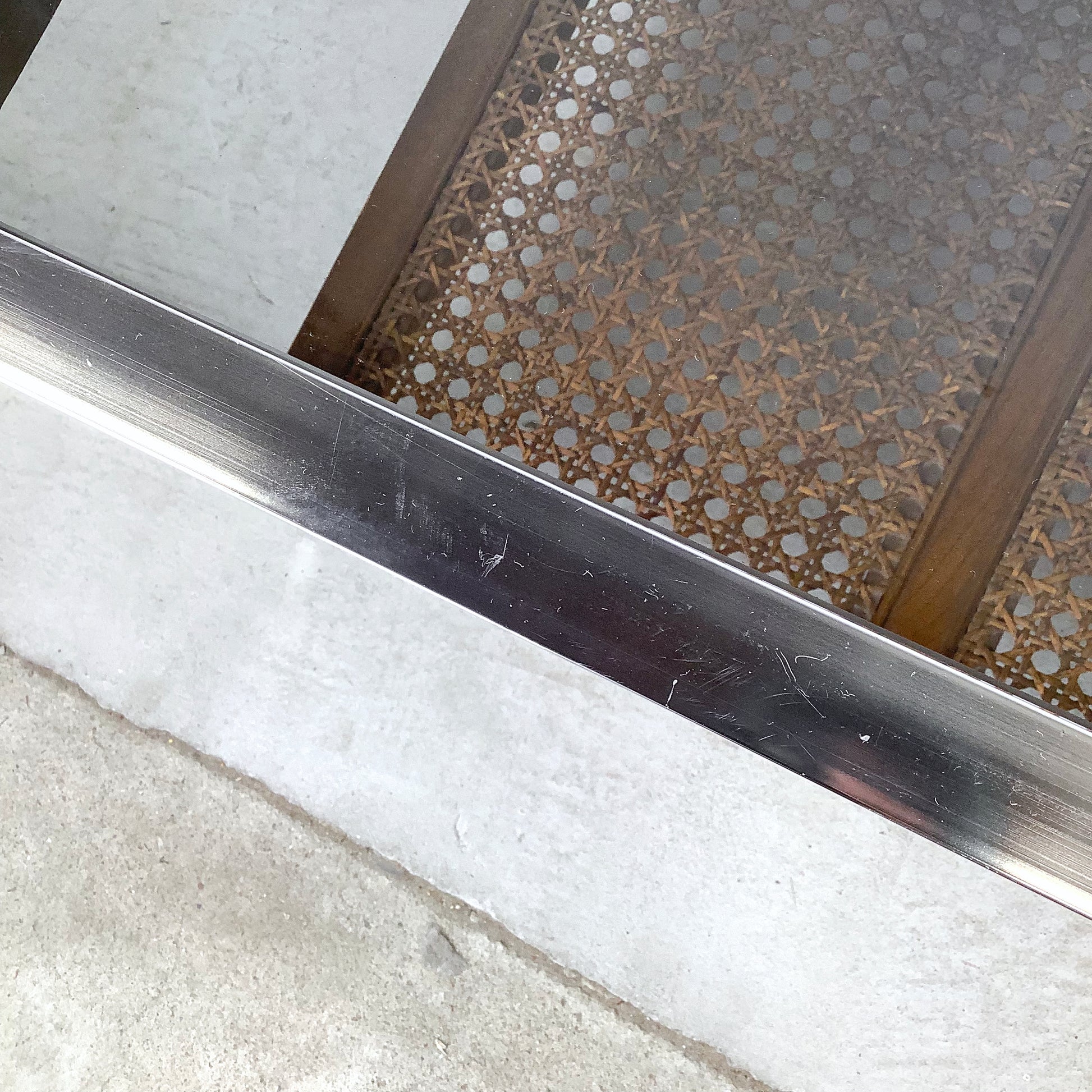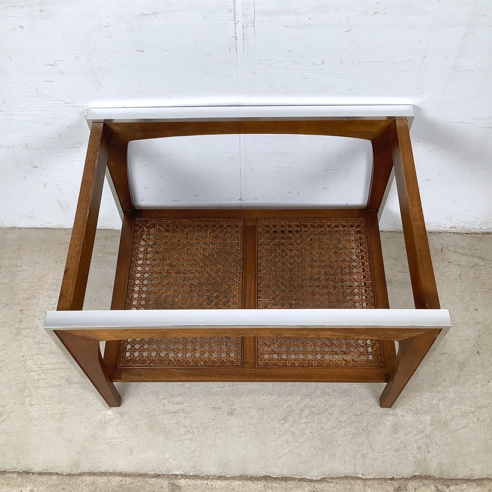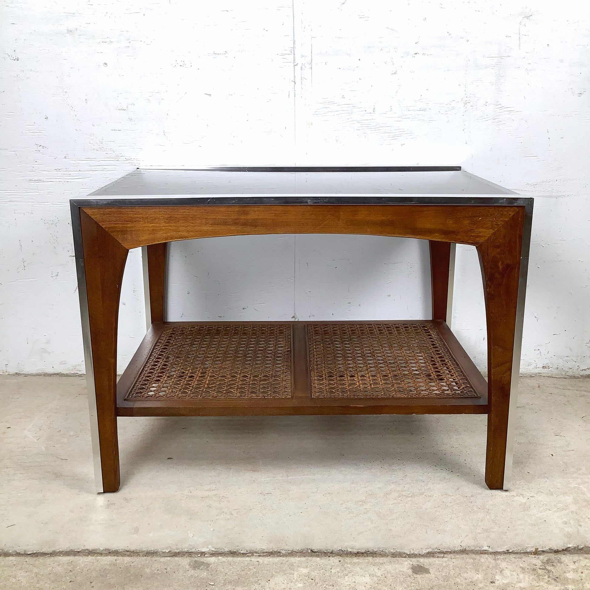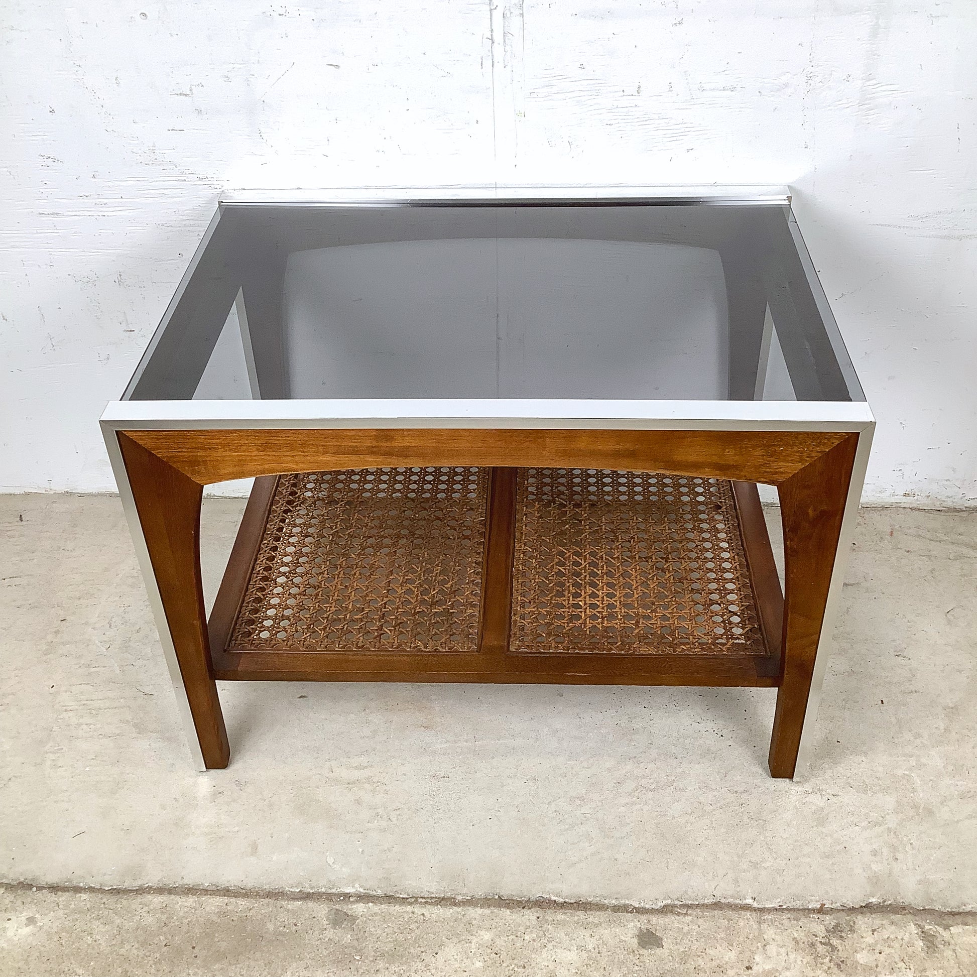 Lane Mid-Century End Table with Smoked Glass, Cane, and Wood Frame