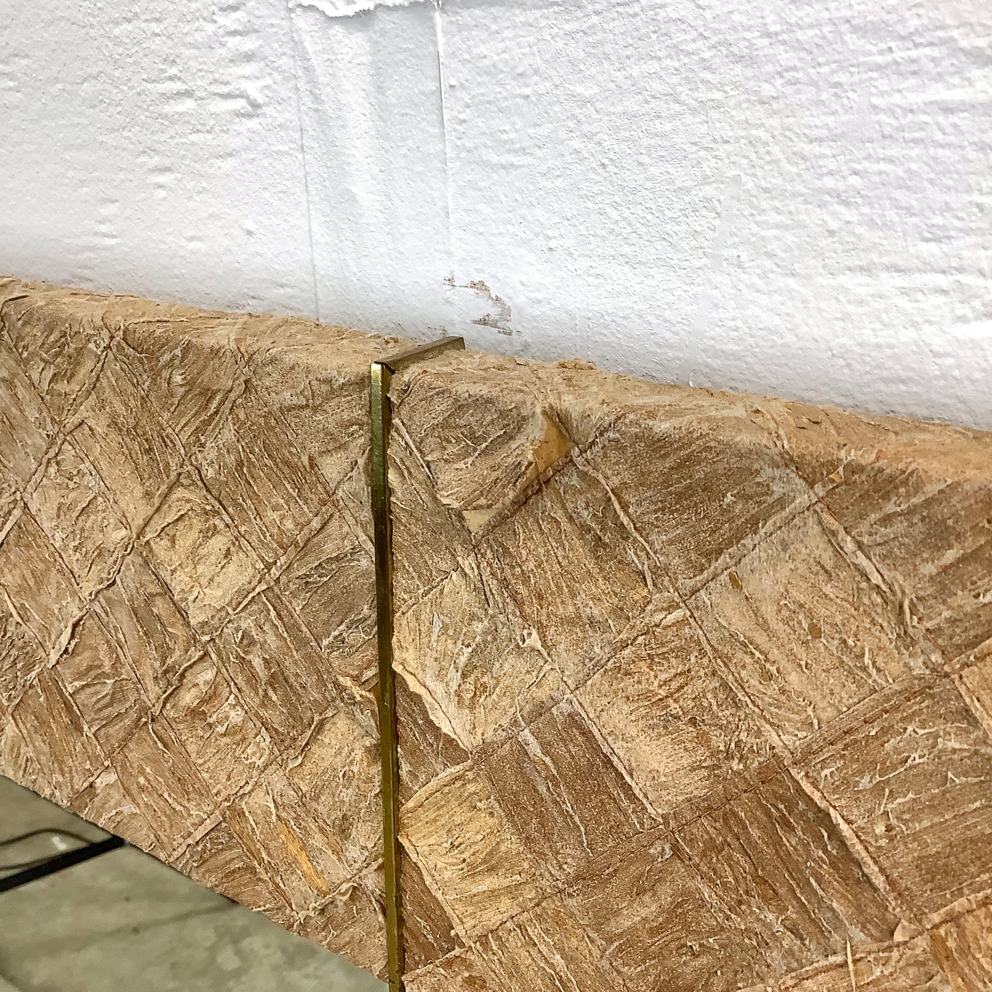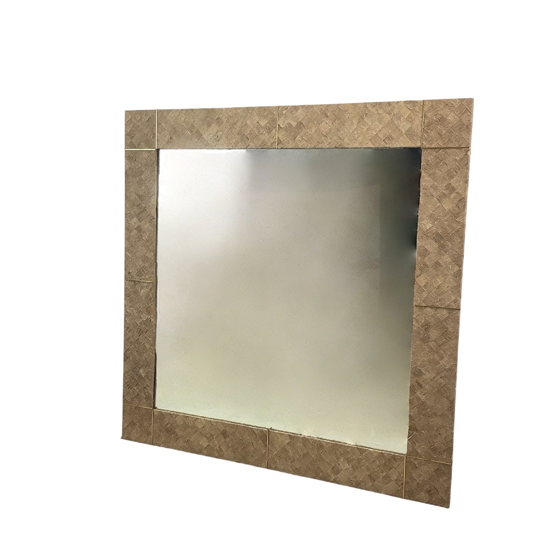 This vintage square mirror brings a tactile, designer touch to the wall. Its wood frame is wrapped in a woven textile that mimics the look and feel of natural sisal — a hallmark of the relaxed, sophisticated Bernhardt aesthetic.