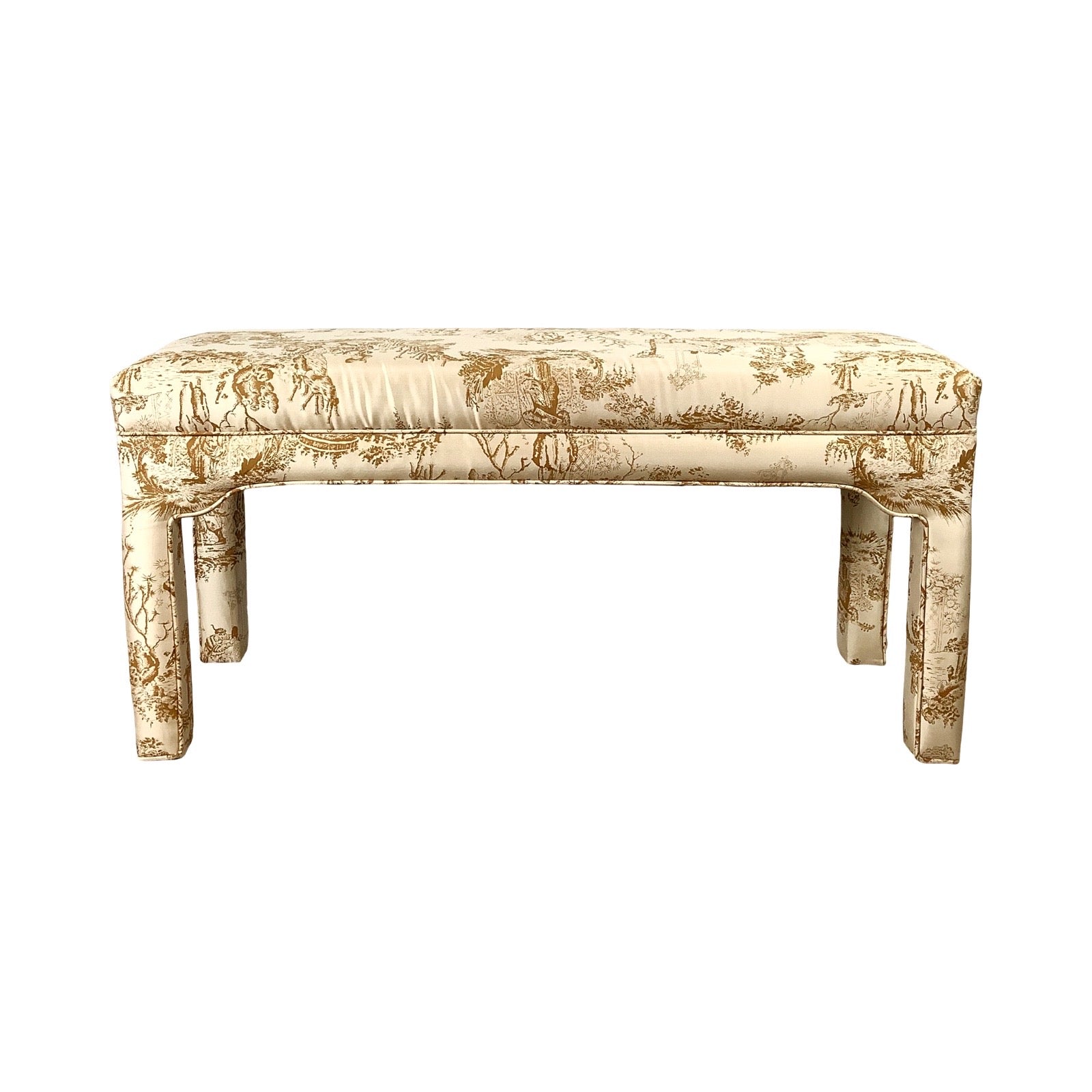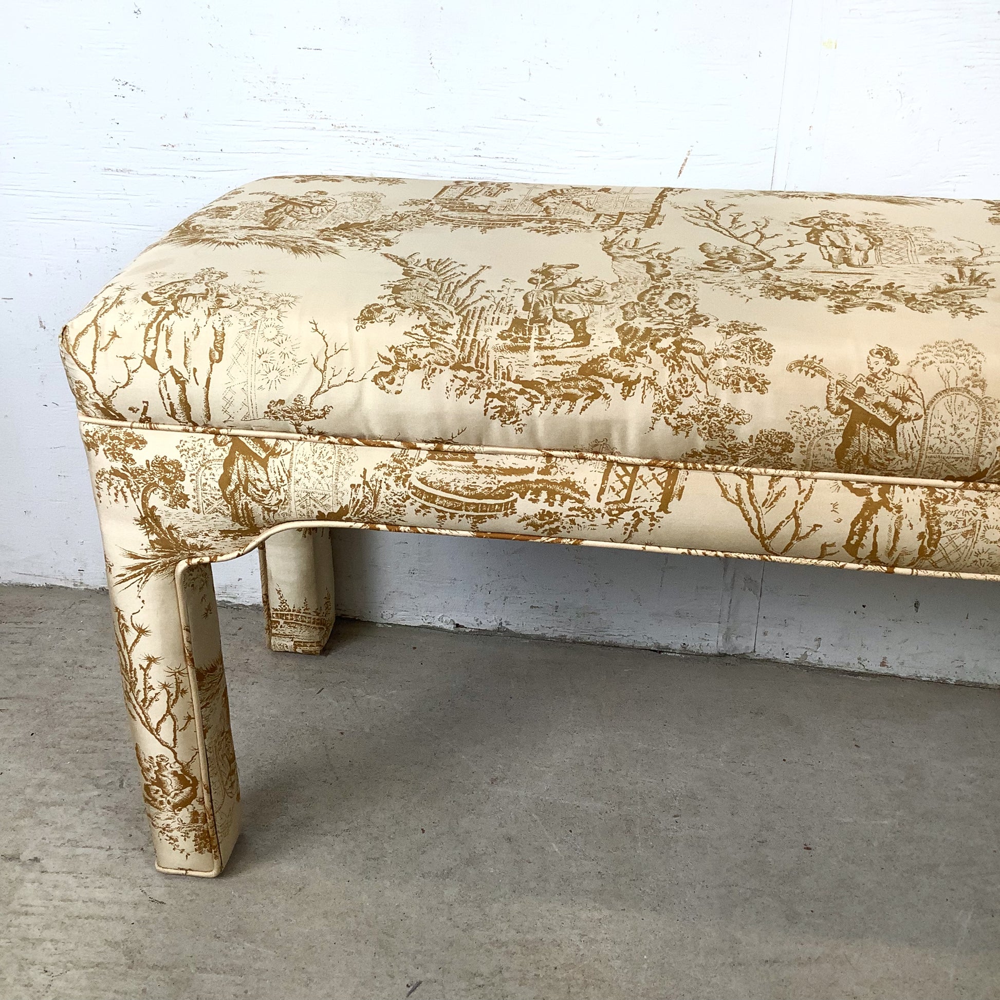 Louis XVI Style Upholstered Foot-of-Bed Bench with French Toile
