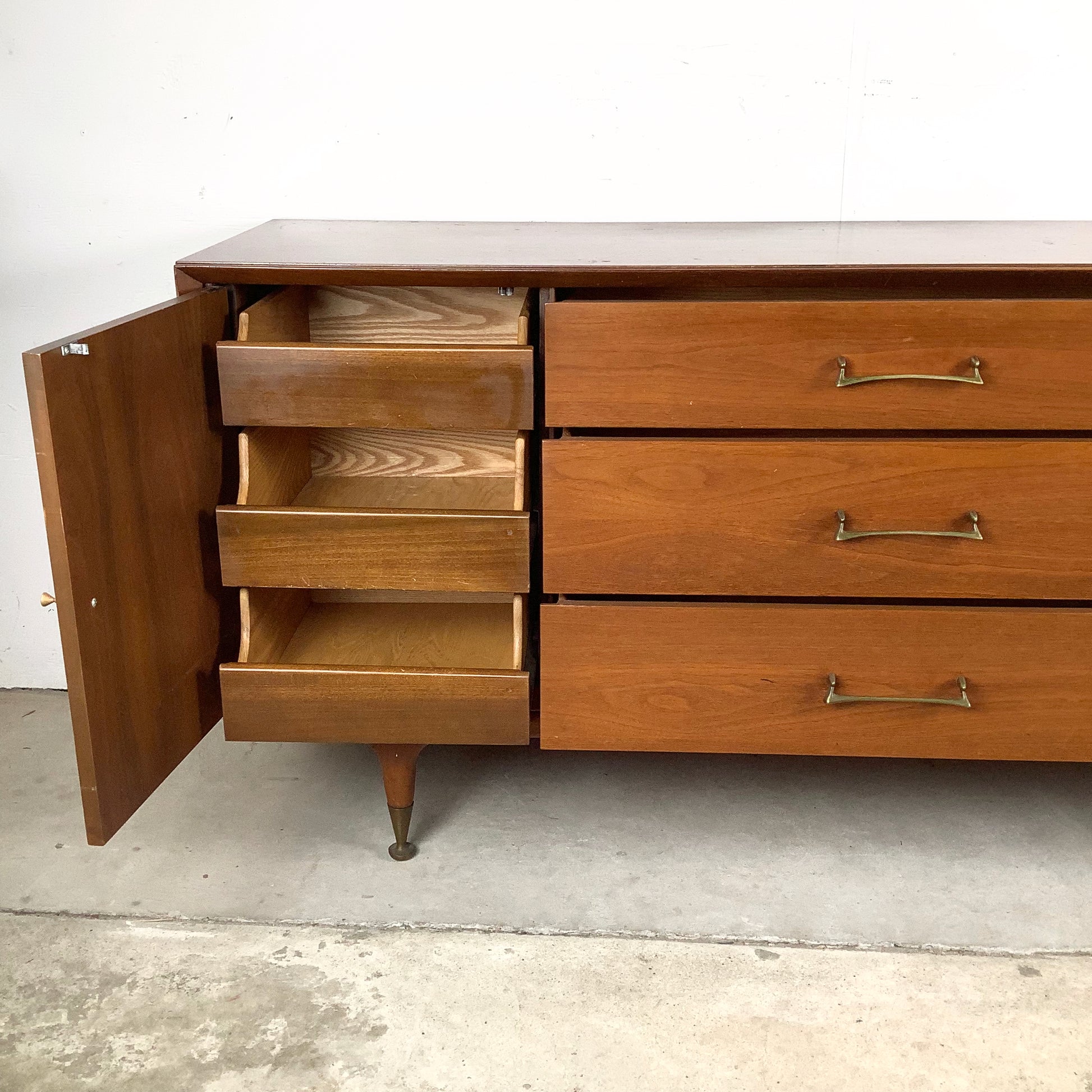This well-proportioned mid-century modern dresser combines simplicity and utility in a design that feels both intentional and versatile. The elongated case creates a strong horizontal emphasis without overwhelming a space.