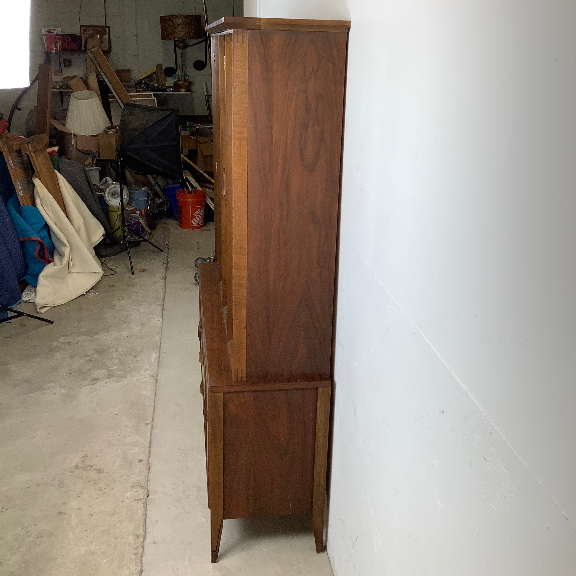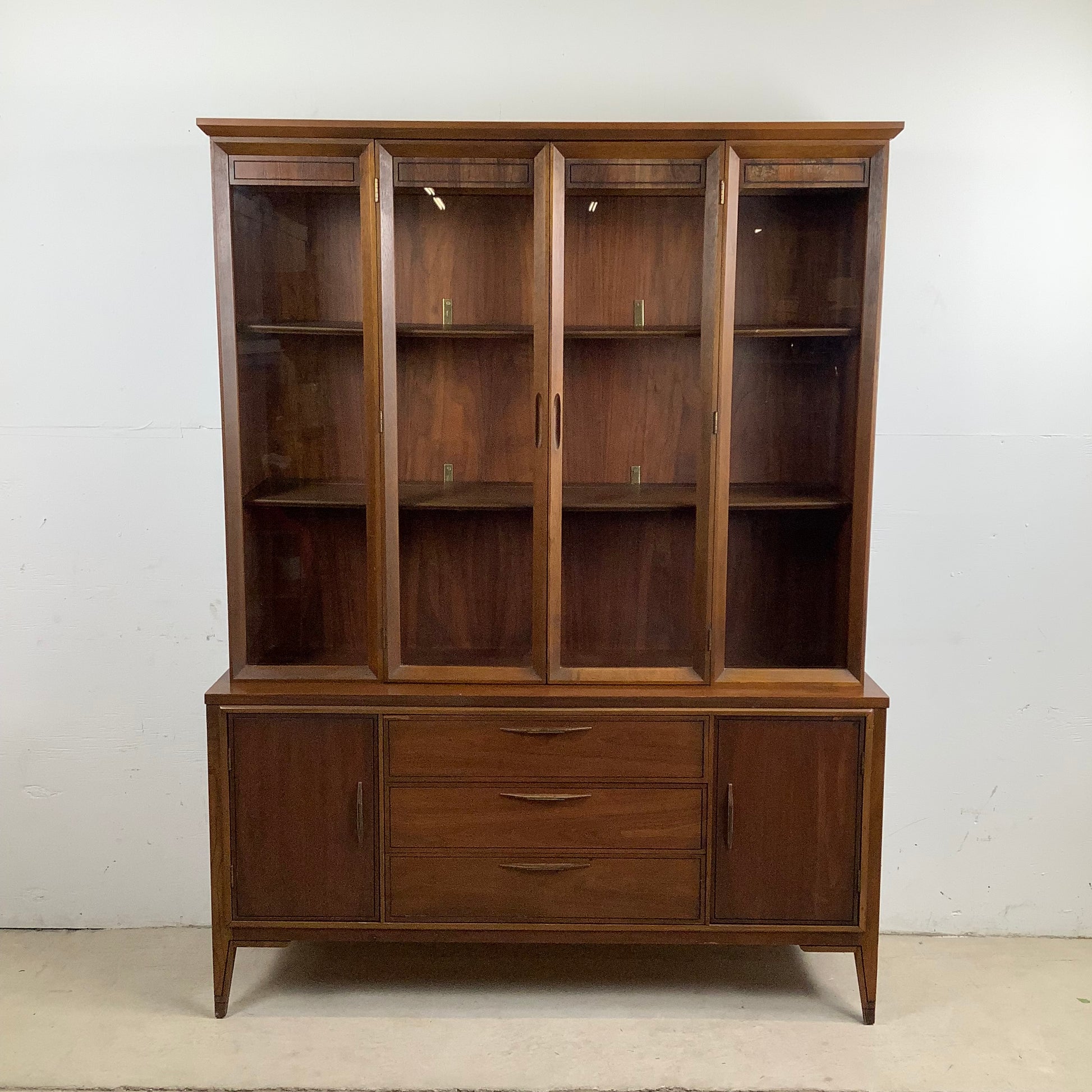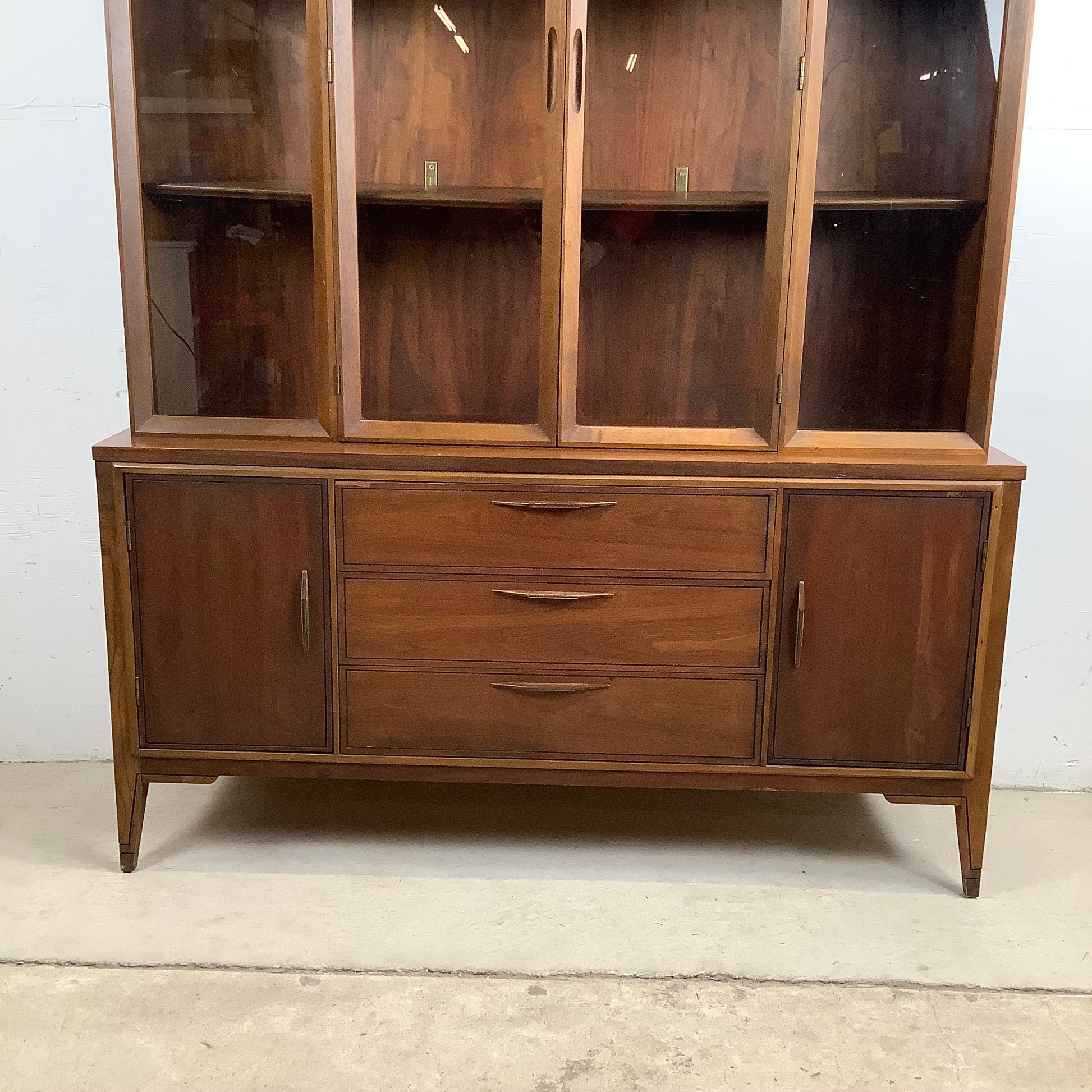 The walnut construction provides a beautifully warm backdrop, adding depth and richness to the room. Mid-century details—like tapered legs, clean lines, and understated hardware—give the piece its signature look while keeping it versatile.