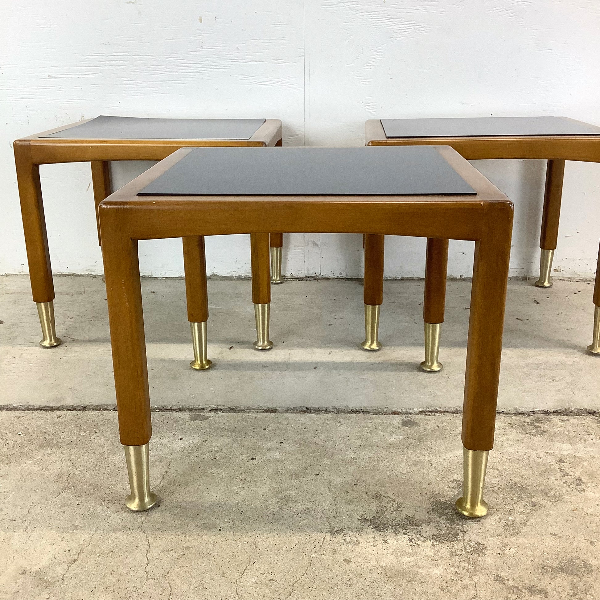 Mid-Century Modern Walnut Nesting Tables with Black Tops