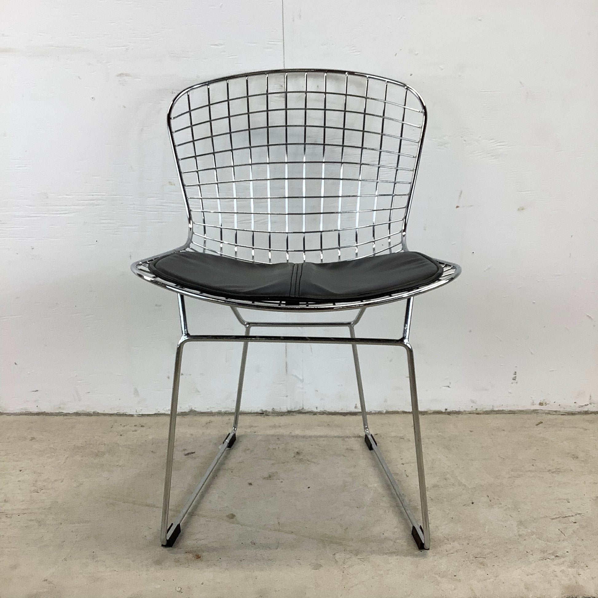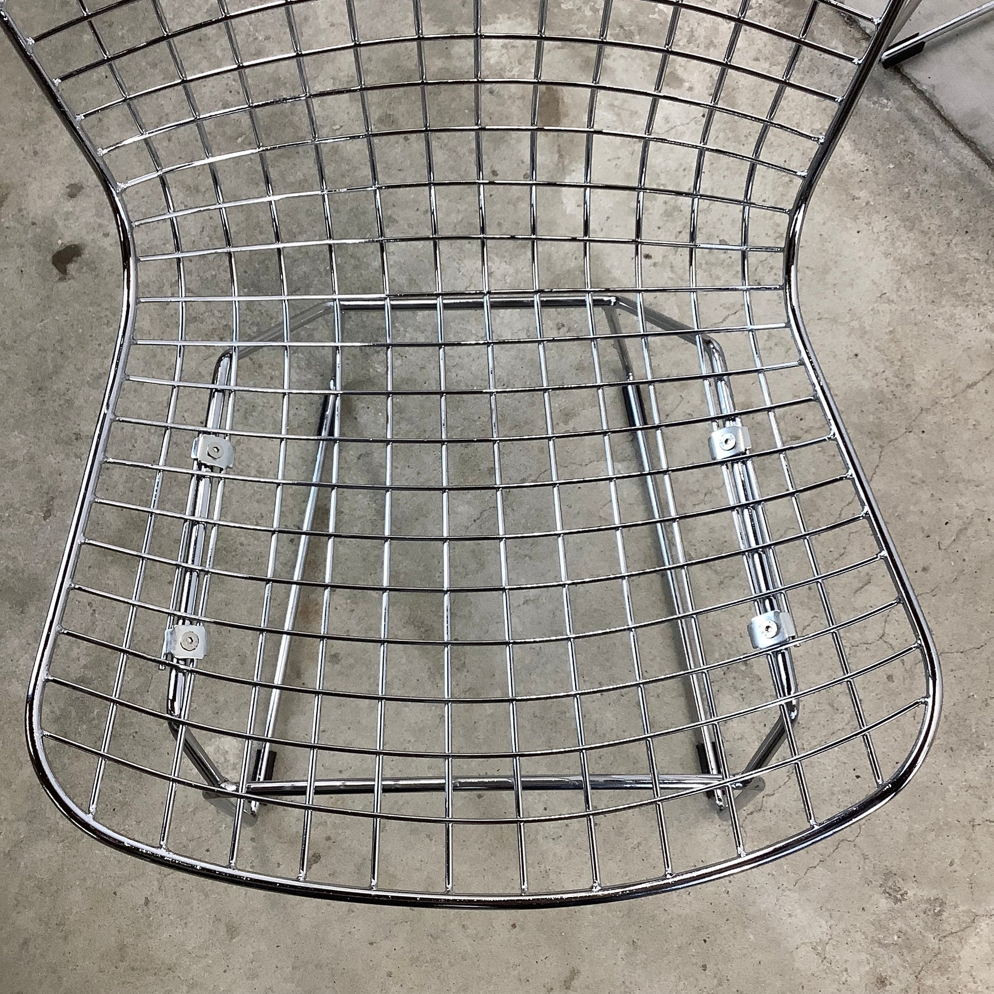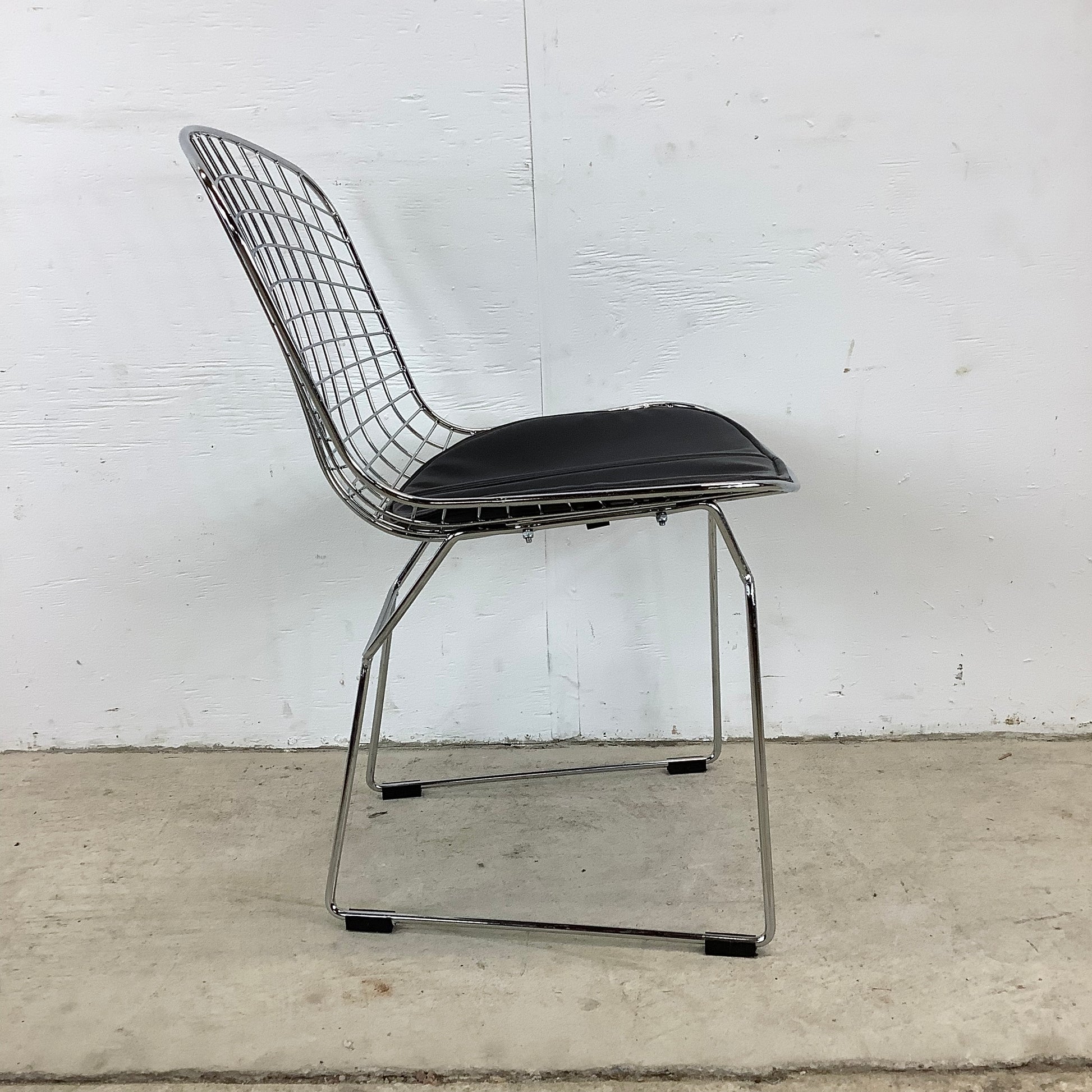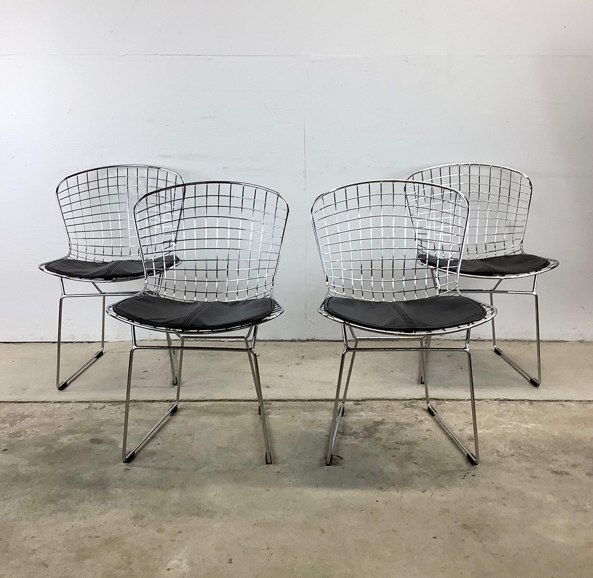 Surround your dining table with the sleek elegance of these modern reproduction wire frame chairs, inspired by the iconic designs of Harry Bertoia for Knoll. These chairs, with their airy silhouette and vintage charm, are a stylish homage to classic mid-century modern furniture.