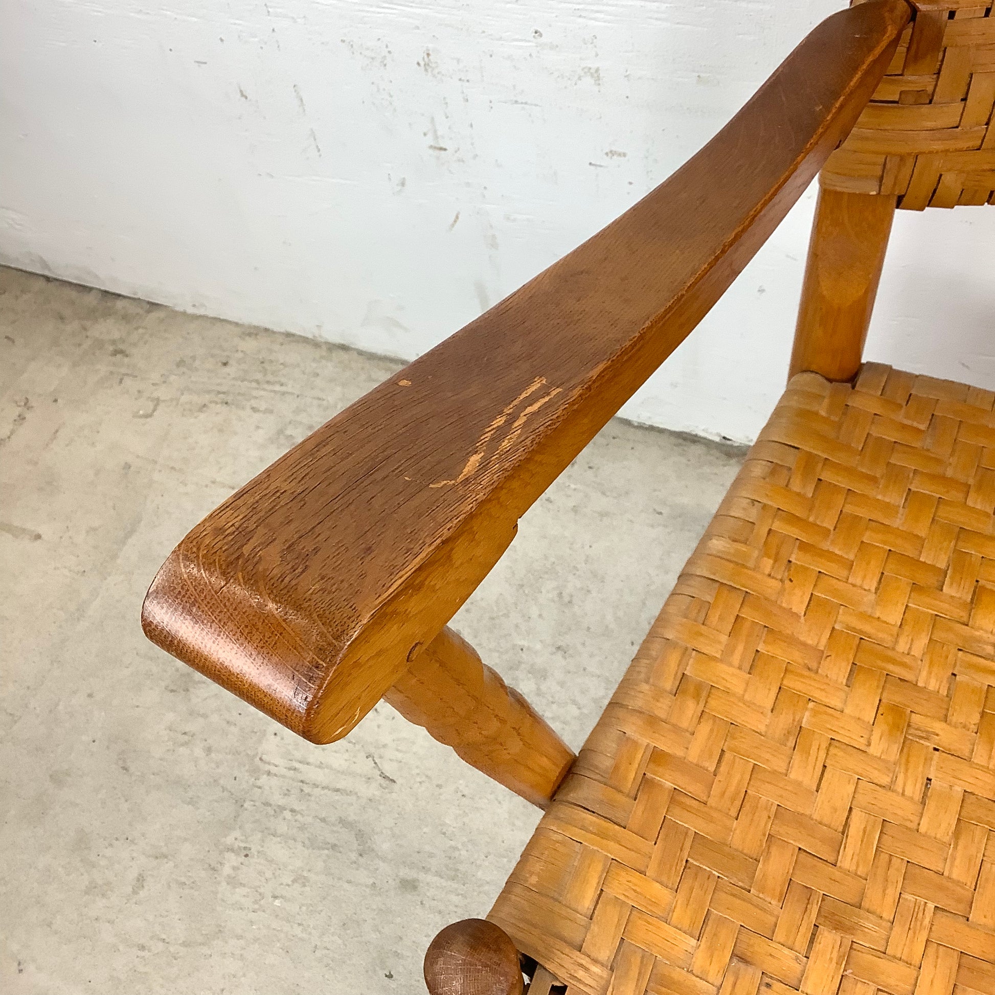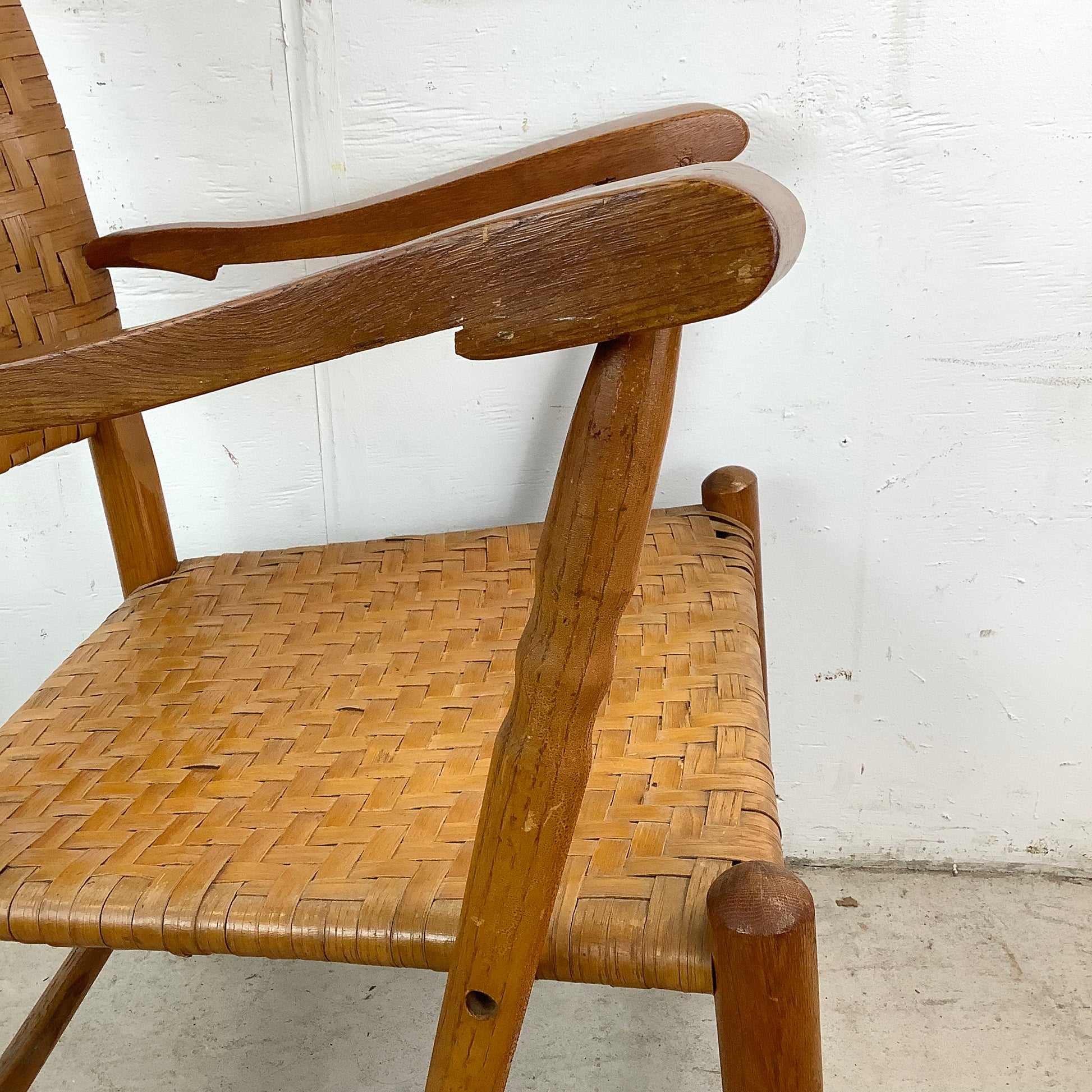 Bring rustic elegance to your space with this vintage armchair featuring a solid oak frame and woven rattan seat and backrest. The design evokes classic Hickory-style craftsmanship while remaining versatile for modern interiors.