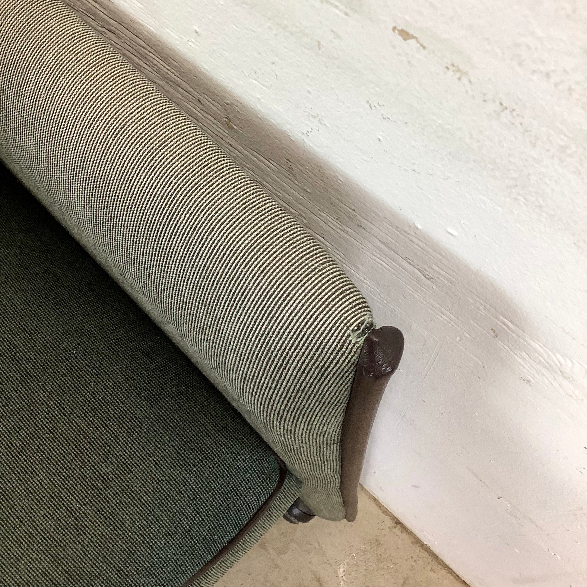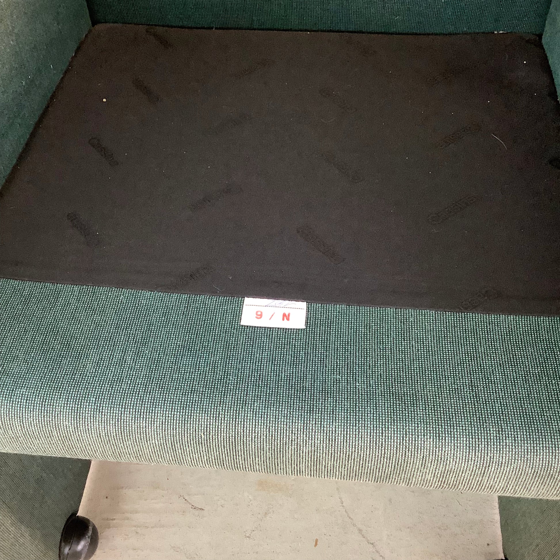 Condition: age appropriate wear, vintage fabric worn and heavily discolored, scuffs and scratches , edge wear, see photos.
