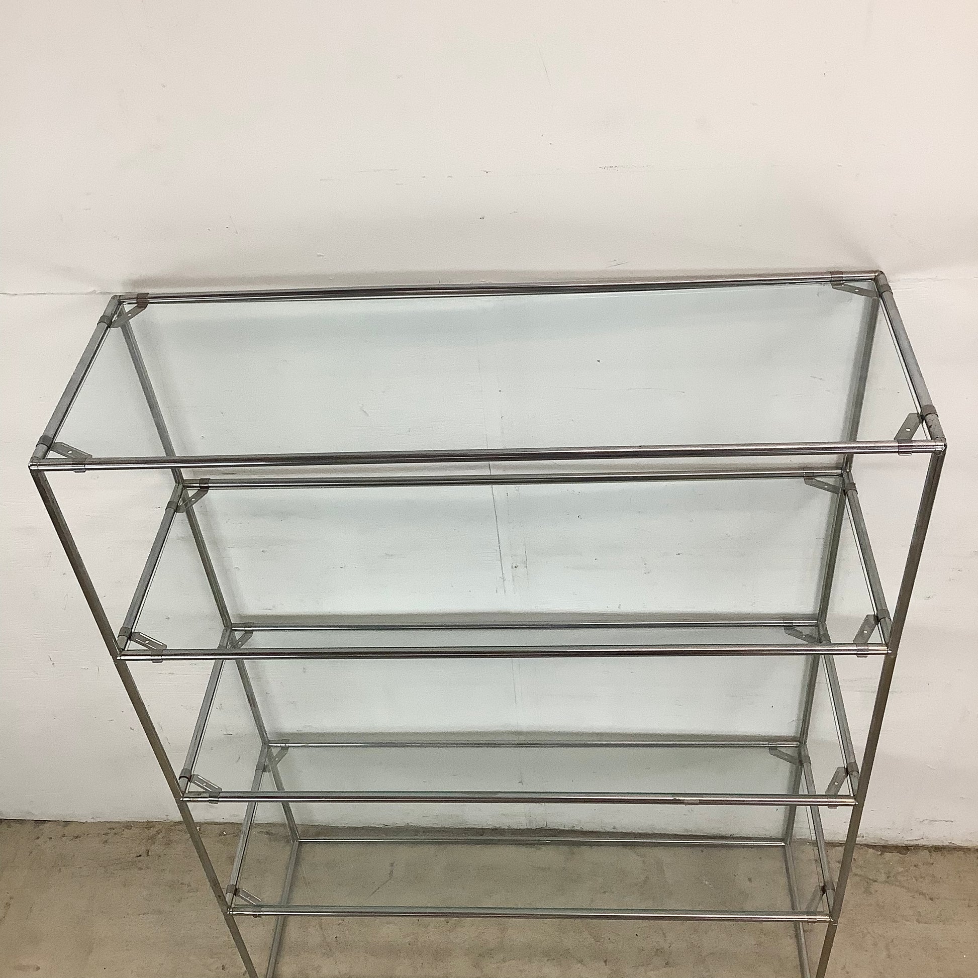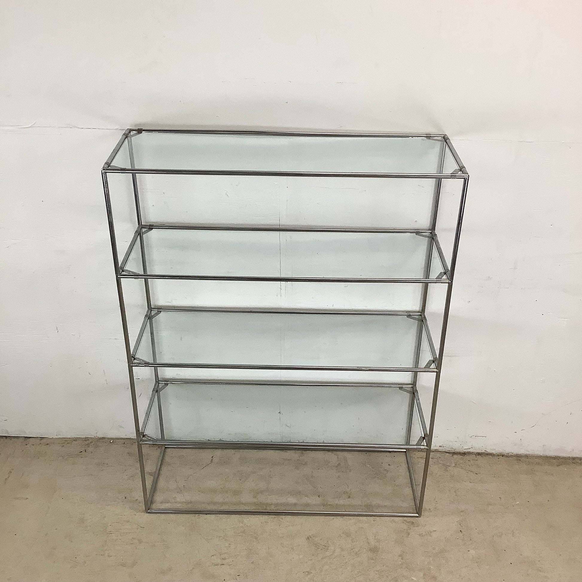 This vintage chrome étagère highlights the beauty of streamlined modern design. Its simple silhouette and reflective finish give it an understated elegance, perfect for complementing both mid-century and contemporary interiors.