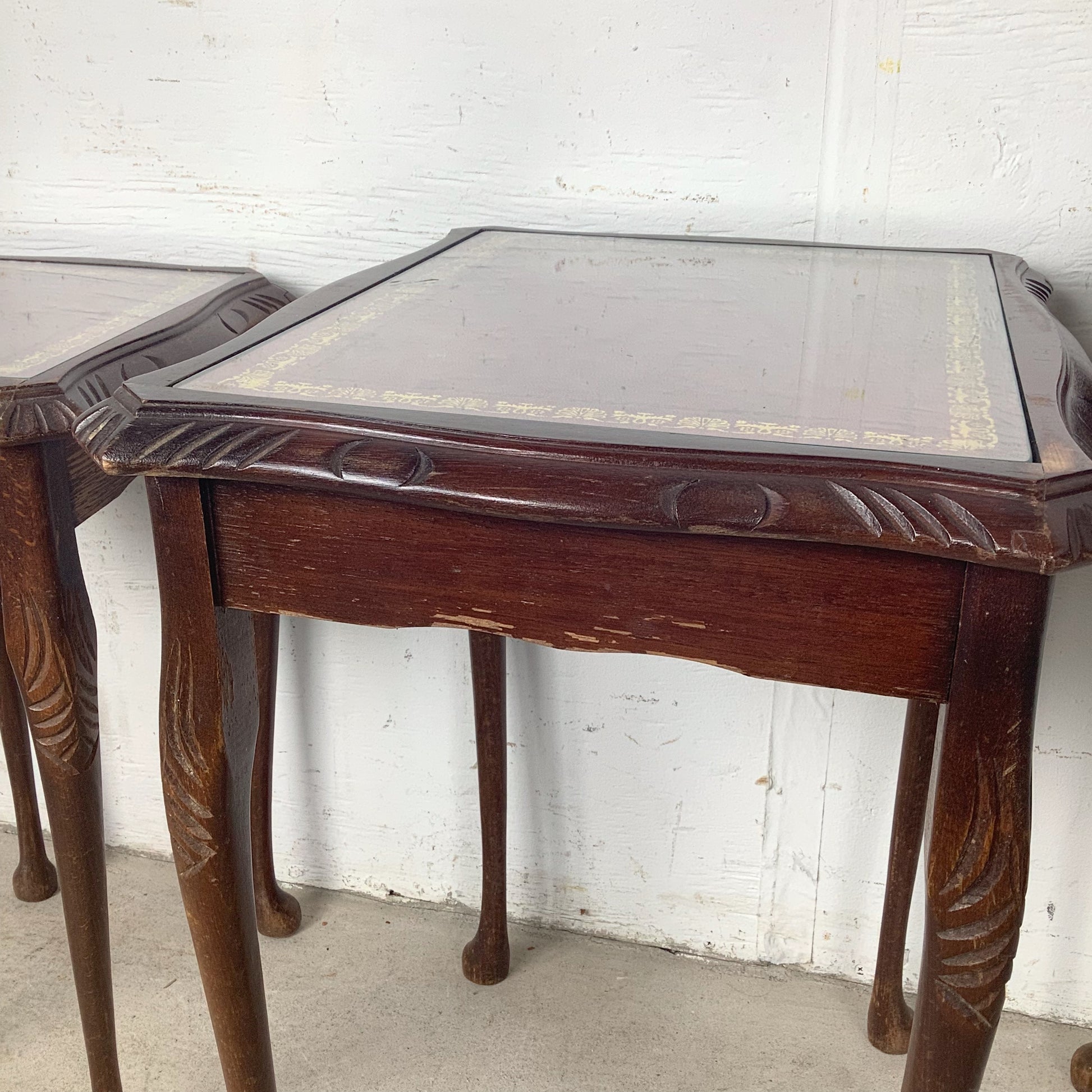 Vintage Queen Anne Style Nesting Tables with Tooled Leather Tops – Set of Three