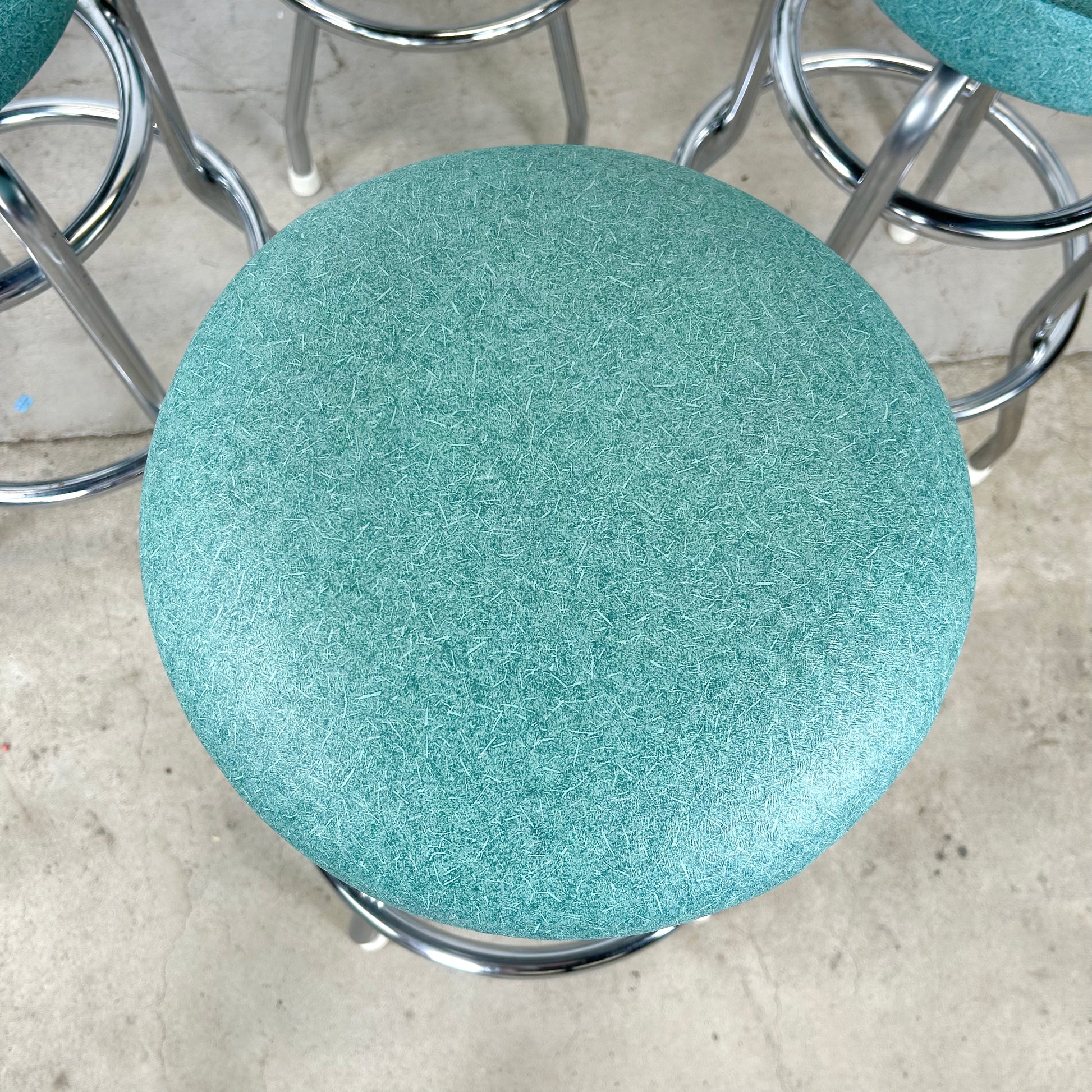 Unlike mass-produced modern stools, these carry the authenticity of vintage construction and design. The combination of tubular steel and bright vinyl captures the optimism of mid-century style, making them stand out in any setting.