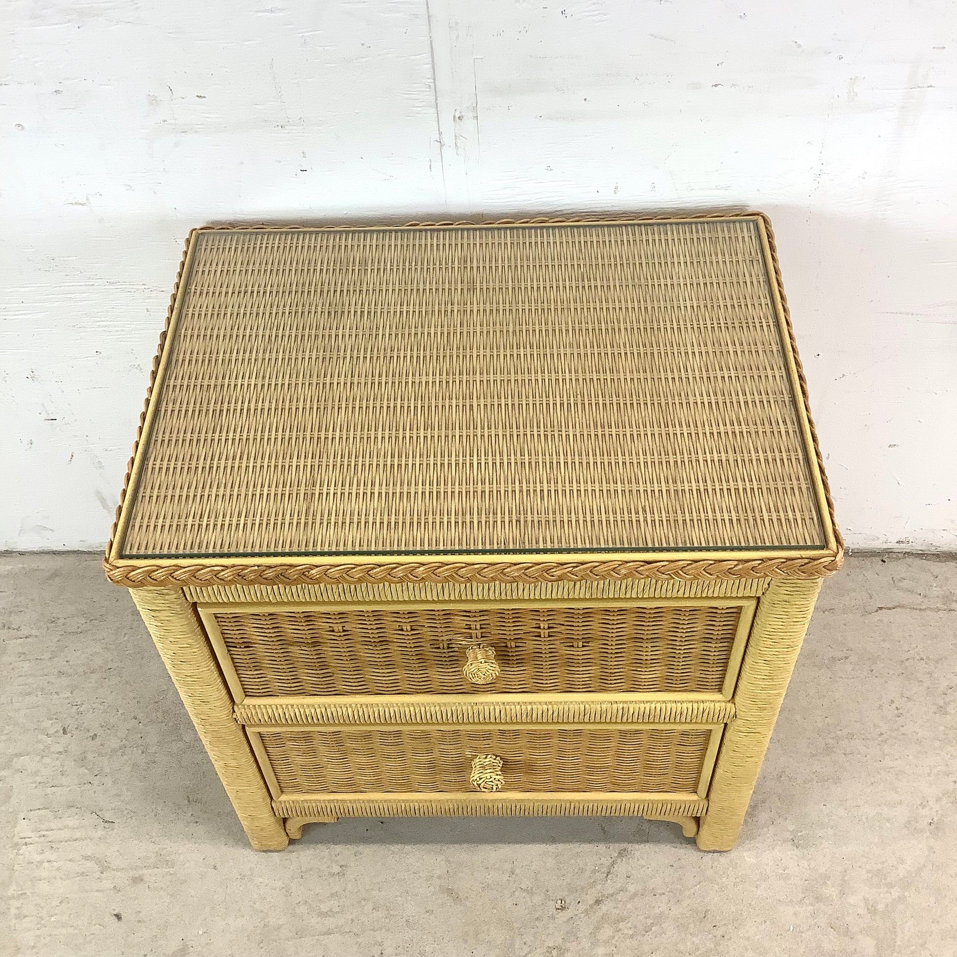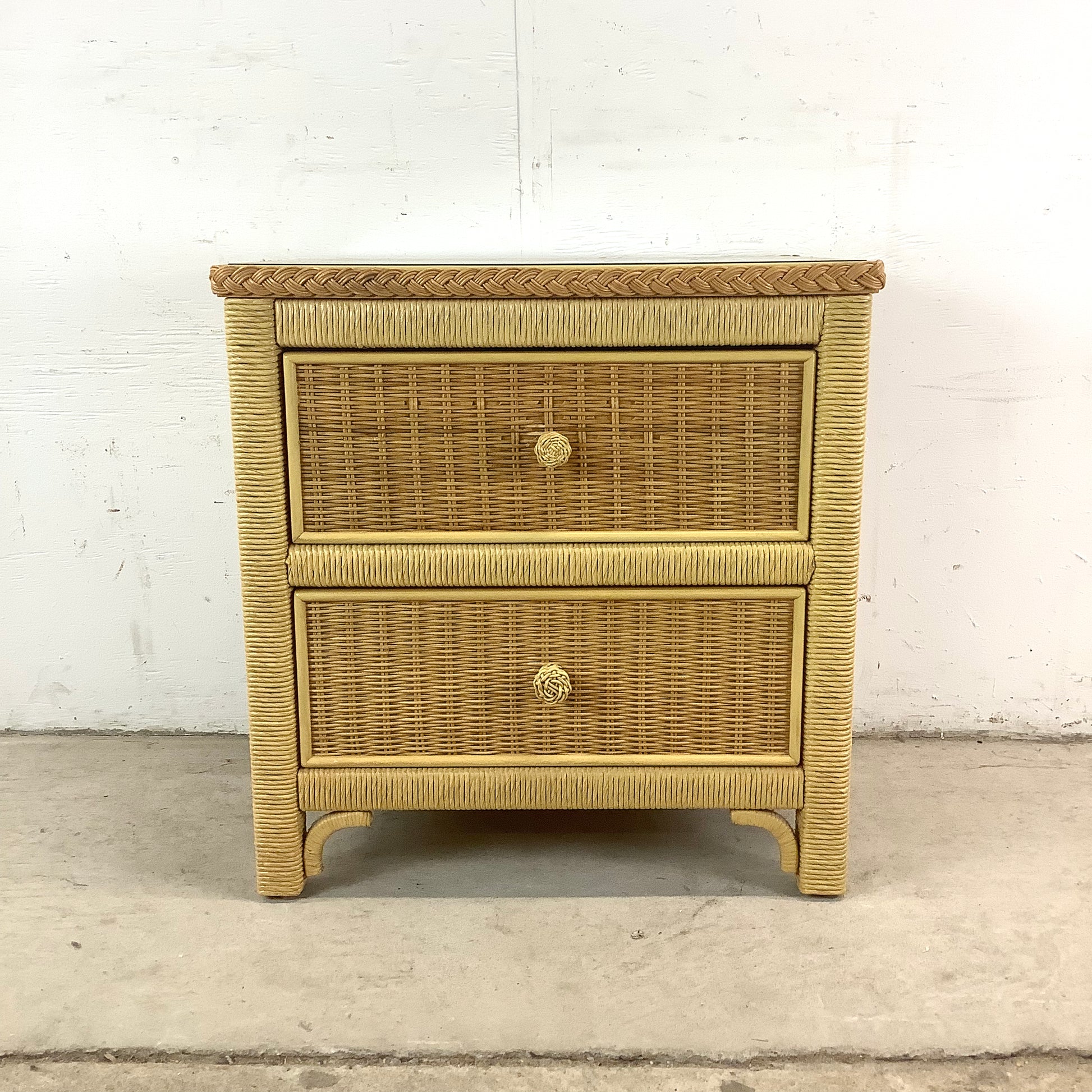 Vintage "Wicker" Two Drawer Nightstand by Henry Link